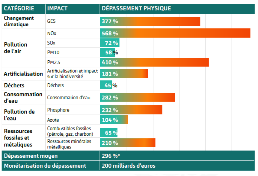 C’est en moyenne le dépassement des limites planétaires par les organisations françaises. Même les entreprises les plus engagées se situent encore entre ×2 et ×2,5.